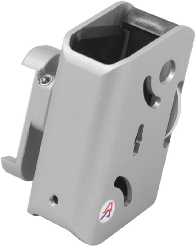Уникальная система крепления «фиксация с помощью адаптеров». Сменные вставки позволяют использовать подсумок как для магазинов 2011 и большего размера , так и для магазинов CZ/Tan и меньшего размера. Имеется третий адаптер, позволяющий использовать подсумок для магазинов типа Glock и M&p. Доступен одноблочный адаптер в качестве аксессуара. Амбидекстральный подсумок подходит для правшей и левшей. Имеет регулируемый угол наклона до 90 градусов. Подсумок крепится на стрелковый ремень с помощью небольшой стальной пластины. Такая система позволяет избежать зазора между внутренней и внешней части пояса и обеспечивает крепкую фиксацию. Вместо стандартных шарниров угол фиксации обеспечивается за счет поджима центрального винта.