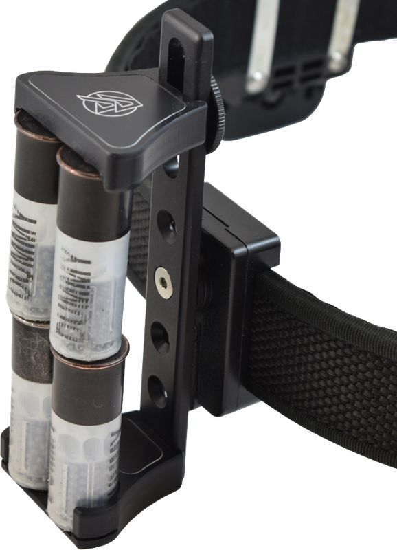 Материал- высокопрочный алюминий и делрин. Патронташ позволяет регулировать угол наклона при усановке на рельсовую систему Alpha Rail System. Расчитан на 4 патрона. Удержание патронов производится за счет магнитов и клем. Изъять патроны можно просто потянув их вниз.Подходит для патронов любых размеров. Регулировка длины производится за счет поворота вверх-вниз натяжного шкифа и верхних опорных затворов на рельсовой системе. Имеются лазерные вставки на верхней и нижней опорах, доступны в нескольких цветах.
