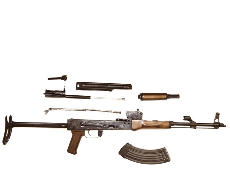 Сделан из боевого автомата производства СССР, путем внесения изменений, необходимых для исключения возможности стрельбы боевыми патронами.