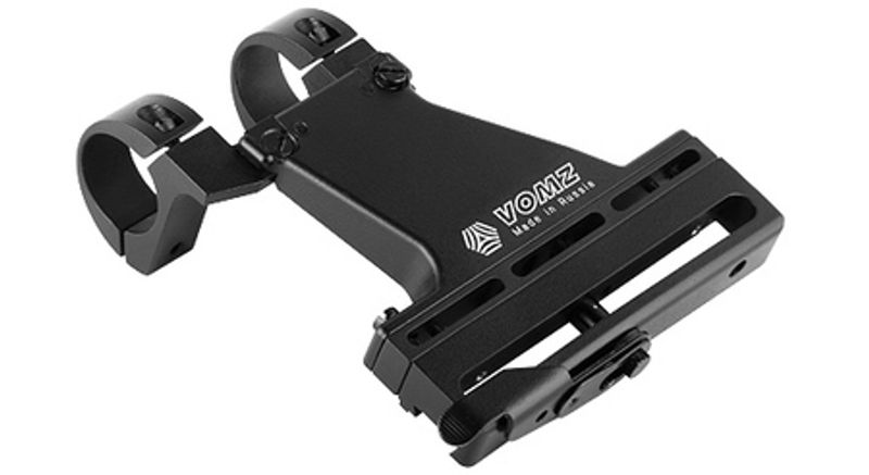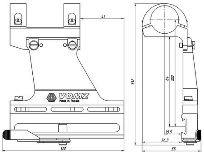Качественный легкий и прочный кронштейн модели ВIII-1A (кольца 25,4 мм) или ВIII-1Б (кольца 30 мм) производства АО «Вологодский оптико-механический завод» ВОМЗ