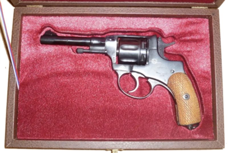 Качественный подарочный футляр с кожаной обивкой для револьвера Наган.