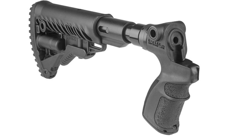 Телескопический приклад с компенсатором отдачи AGM500 FK SB для Mossberg 500 представляет собой комплект из трубы AGM500 SB TUBE и приклада GLR-16.