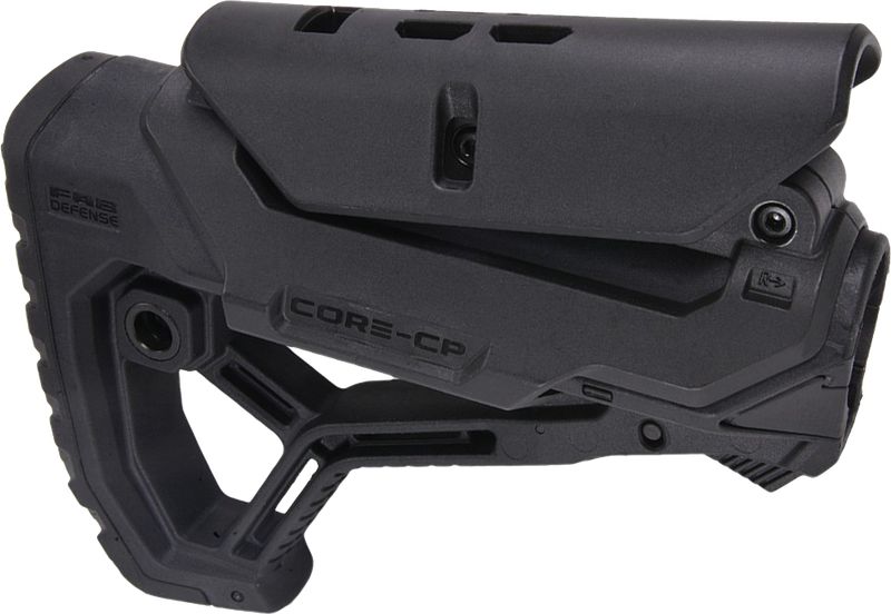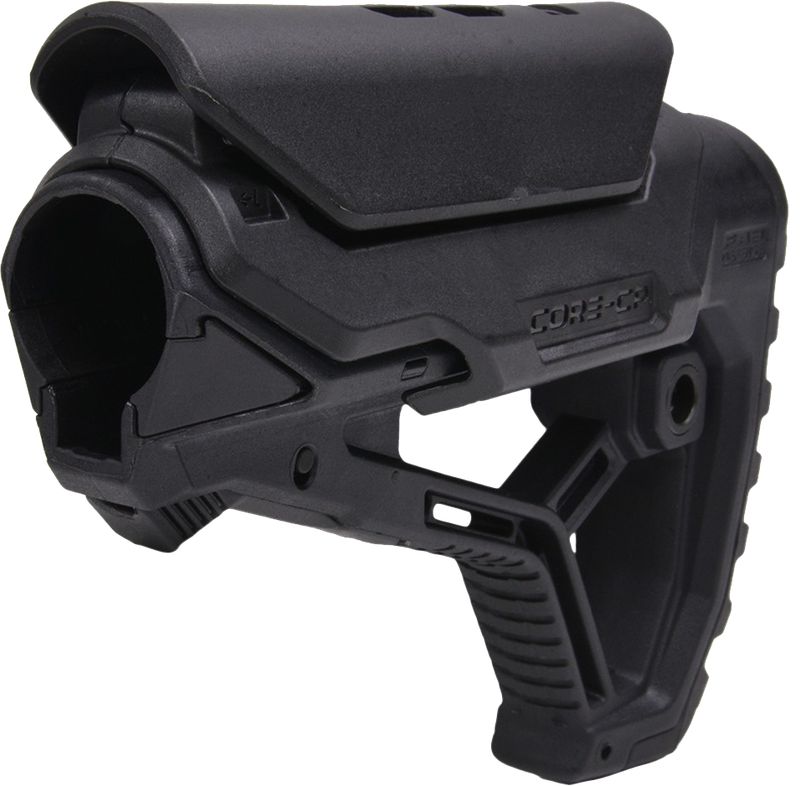 Приклад GL-CORE CP с установленным упором для щеки отличается эргономичным дизайном и специфической формой тыльной части. Наличие трех граней обеспечивает плавный перекат оружия по плечу при переходе в боевое состояние и обратно.