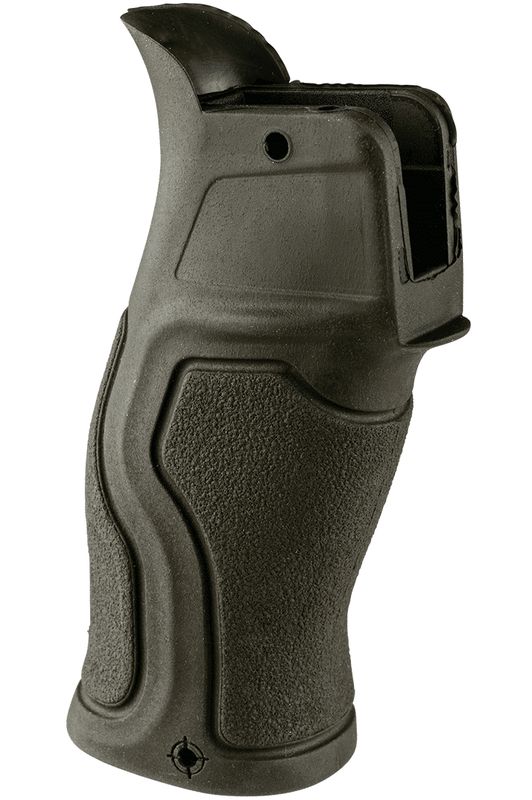 Благодаря текстурированной резиновой поверхности рукоять обеспечивает комфортность захвата при любых условиях стрельбы. Удерживать рукоятку удобно даже без перчаток, в том числе и влажными руками. Текстура резины допускает небольшое вдавливание пальцев и характерных выступов ладони, повышая уровень фиксации рукояти. Благодаря таким свойствам вставок, отпала необходимость в наличии подпальцевых выемок, что расширяет универсальность захвата.