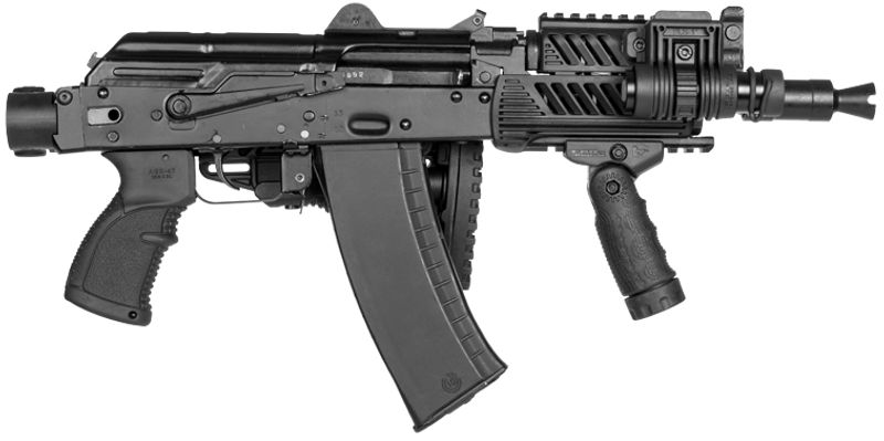 Конструкция из прочного и легкого армированного стекловолокном полимера и алюминия улучшает эргономичность оружия, снижает время прицеливания, повышает стабильность удержания оружия на цели.