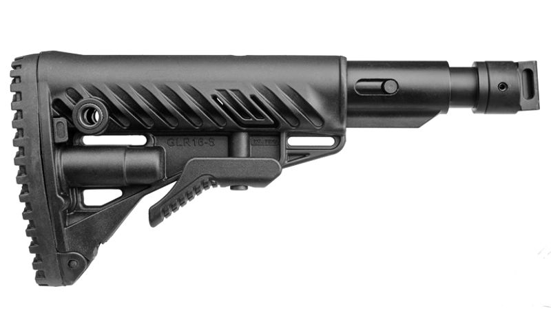 Телескопический складной приклад с компенсатором отдачи М4-SAIGA SB для САЙГА/AK-74M/АК-100-ые серии представляет собой комплект из трубы М4-SAIGA SB TUBE и приклада GLR-16.