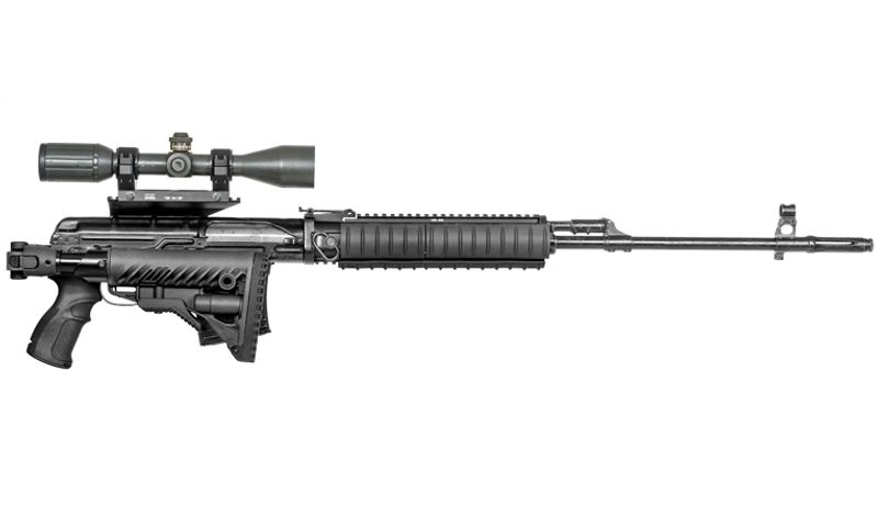 Механизм складывания позволяет одним нажатием кнопки сложить приклад вбок. По умолчанию приклад складывается вправо; по предварительному заказу возможна поставка приклада со складыванием влево. Пружинный фиксатор приклада в сложенном состоянии обеспечивает надежность и безопасность эксплуатации винтовки. В сложенном состоянии приклада общая длина оружия соответствует законам РФ..