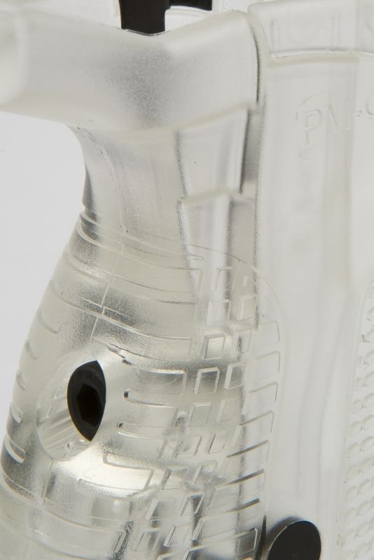 Эргономичность рукоятки способствует лучшему хвату пистолета,что особо ощутимо при скорострельной стрельбе.