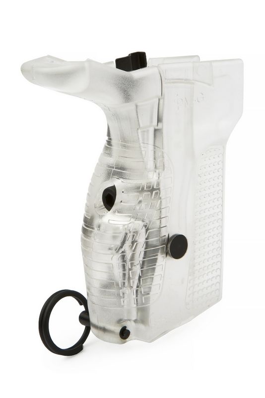 Рукоятка имеет встроенный механизм отсоединения магазина, кнопку которого можно нажимать большим пальцем стрелковой руки, что уменьшает время замены магазина, а также увеличенный хвостовик для защиты руки от воздействия затворной рамы.