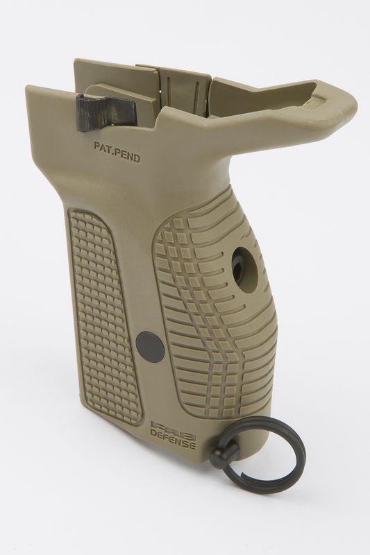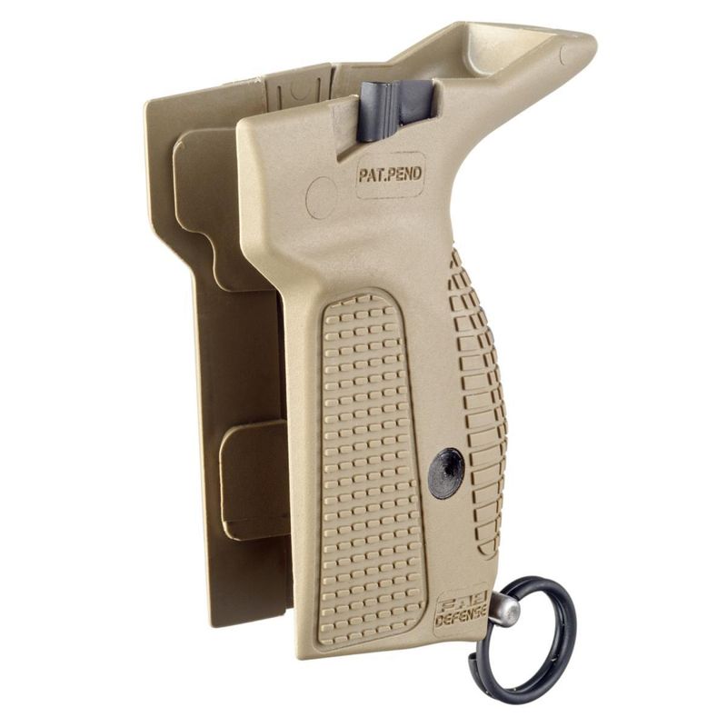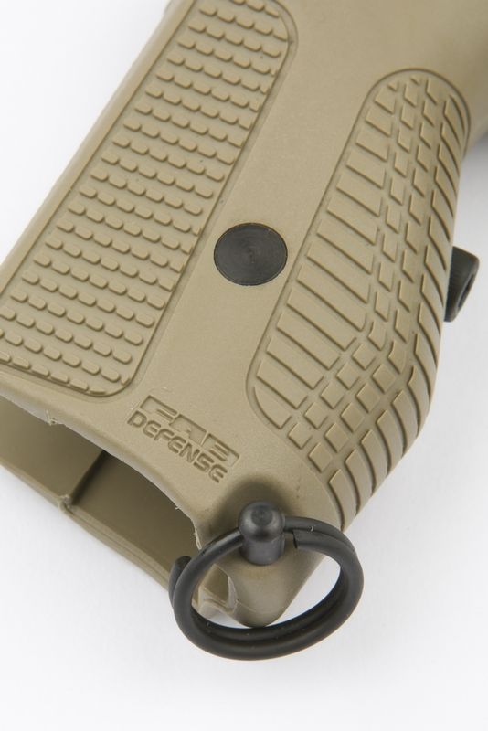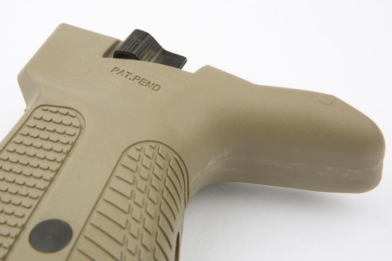 Рукоятка имеет встроенный механизм отсоединения магазина, кнопку которого можно нажимать большим пальцем стрелковой руки, что уменьшает время замены магазина, а также увеличенный хвостовик для защиты руки от воздействия затворной рамы.