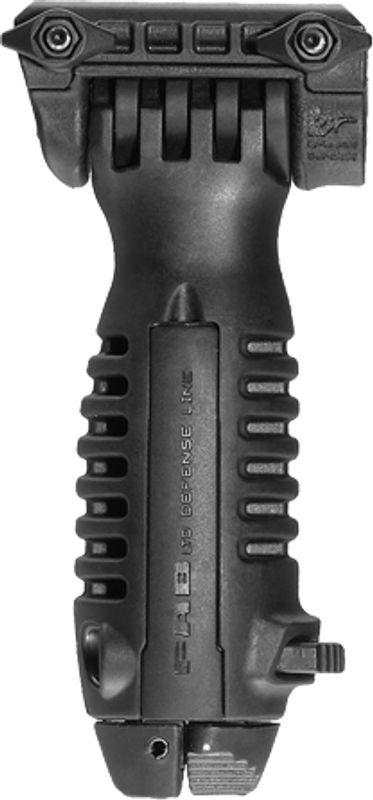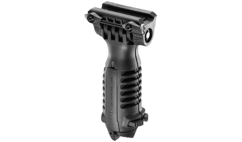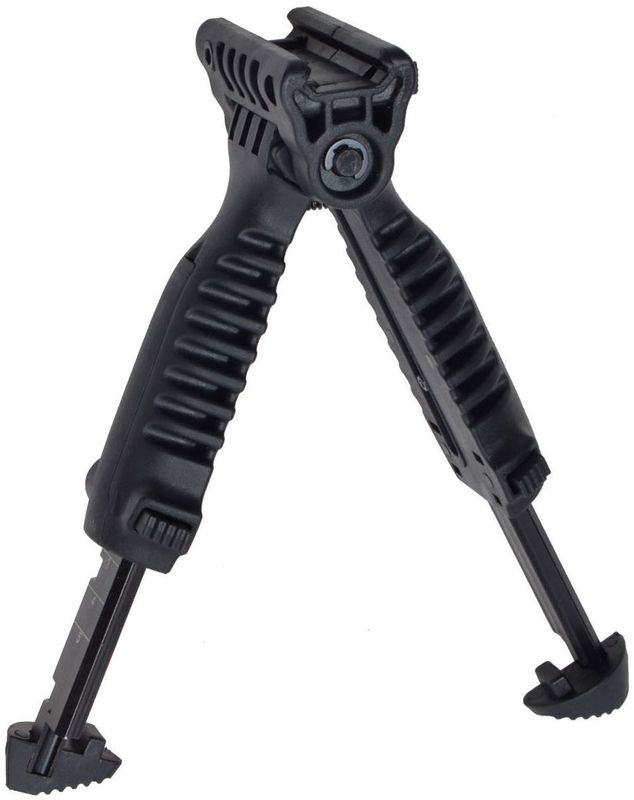 Трансформируется из передней рукоятки в полностью функциональные сошки нажатием одной кнопки.