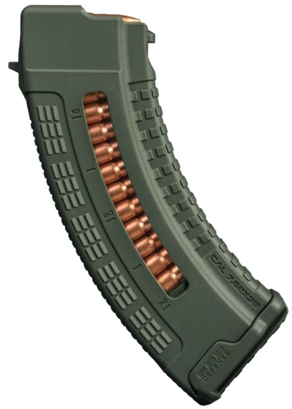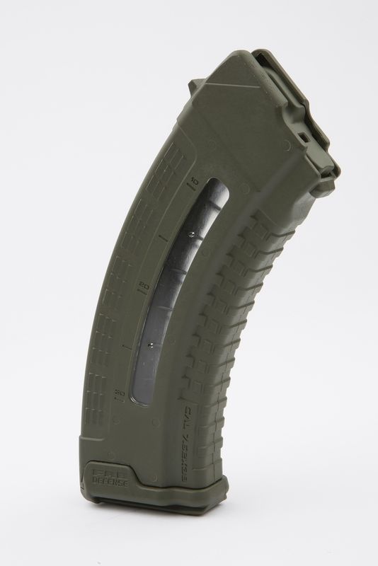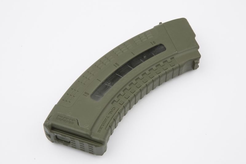 Полимерный магазин, разработанный известной израильской компанией Фаб Дефенс, которая занимается изготовлением качественных оружейных комплектующих и аксессуаров из полимера. Рассчитан под боеприпасы калибром 7,62x39, обладает вместимостью 30 штук.
