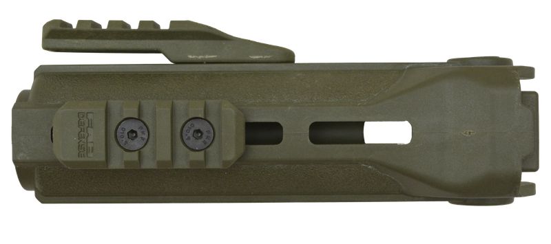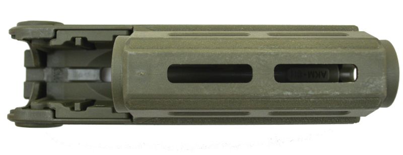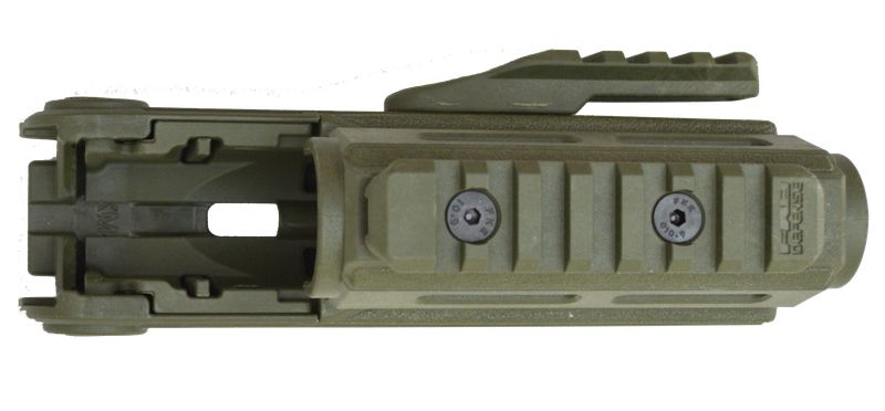 Служит для защиты рук, установки различных рукояток, фонаря или других обвесов. Для крепления дополнительной оснастки предусмотрены 15 отверстий стандарта M-LOK –пять с каждой стороны, два сверху и три снизу.