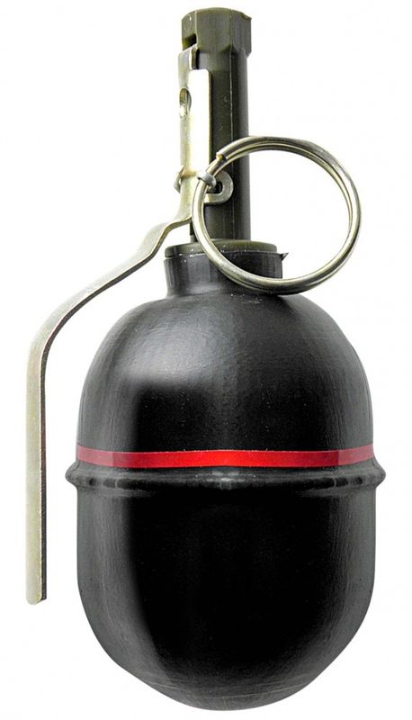 Корпус выполнен из безосколочного мягкого пластика, по форме повторяет корпус боевой гранаты РГД-5.