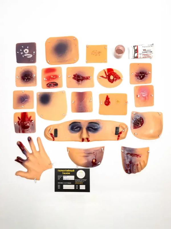 Набор ран представляет собой мягкие силиконовые накладки с имитацией различных ранений и поражений. Подходит для оснащения по 805 приказу.
