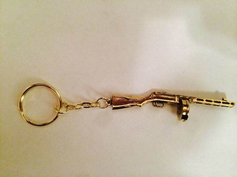 Латунный брелок пистолета-пулемета Шпагина. Имеется кольцо для крепления ключей.