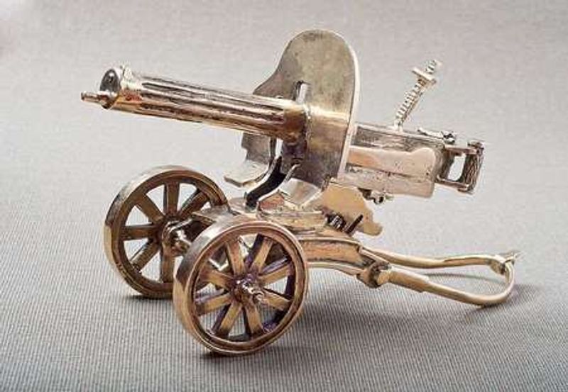 Сувенирный брелок пулемет "Максим", сделанный из латуни под средством литья. Брелок может стать отличным приятном сюрпризом для любителя оружия.