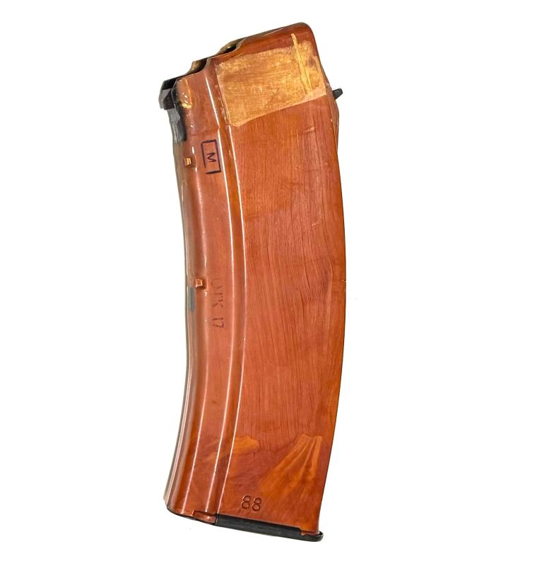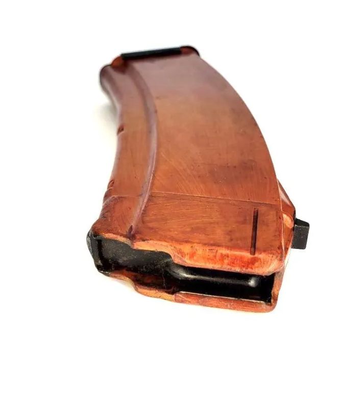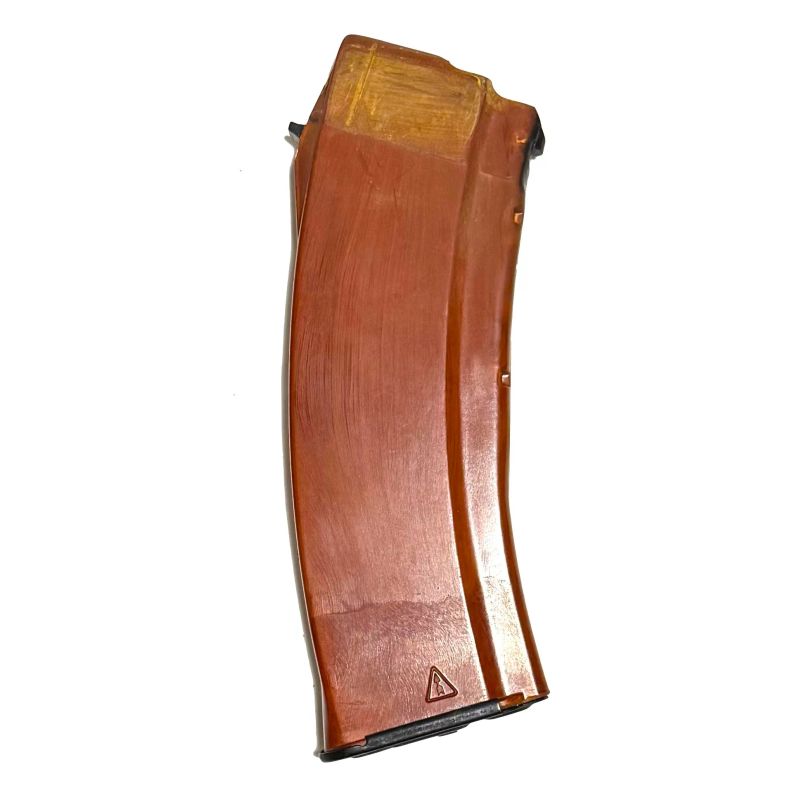 Магазин для АК74 рыжий бакелитовый - ранний магазин для автоматов Калашникова АК-74 и АКС-74 производства СССР. Материал в народе именуемый "бакелит" - прессовочный материал АГ-4С на основе феноло-формальдегидной смолы, наполненной стеклянными нитями. Магазин новый или в отличном состоянии.