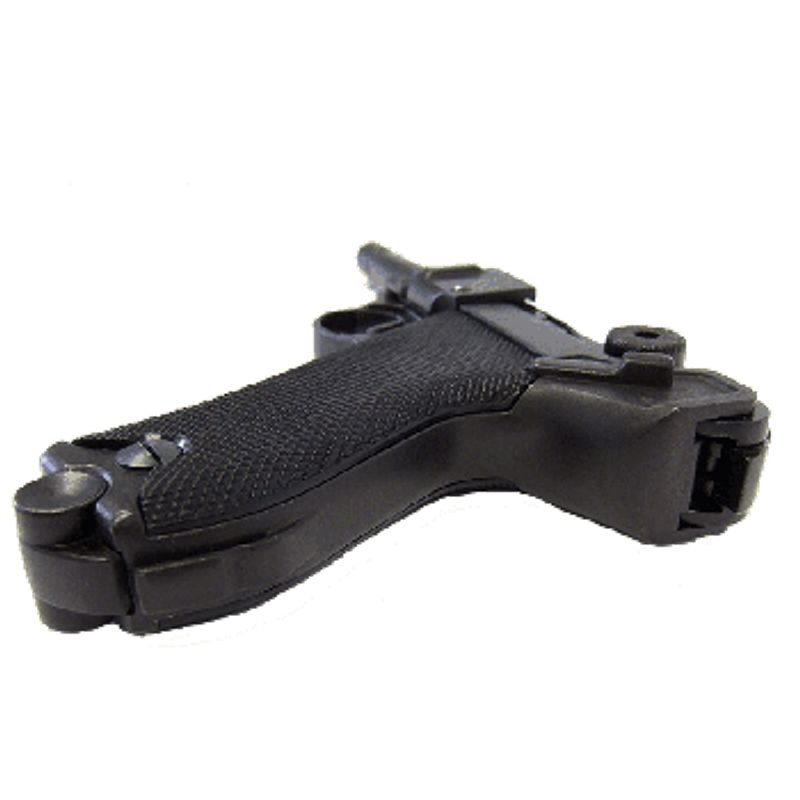 Макет пистолета Люгер Р08 является неплохой копией боевого Парабеллума, обладает схожими внешними данными и возможностью имитации взведения, имеет отъёмный магазин. Макет выполнен из металла.