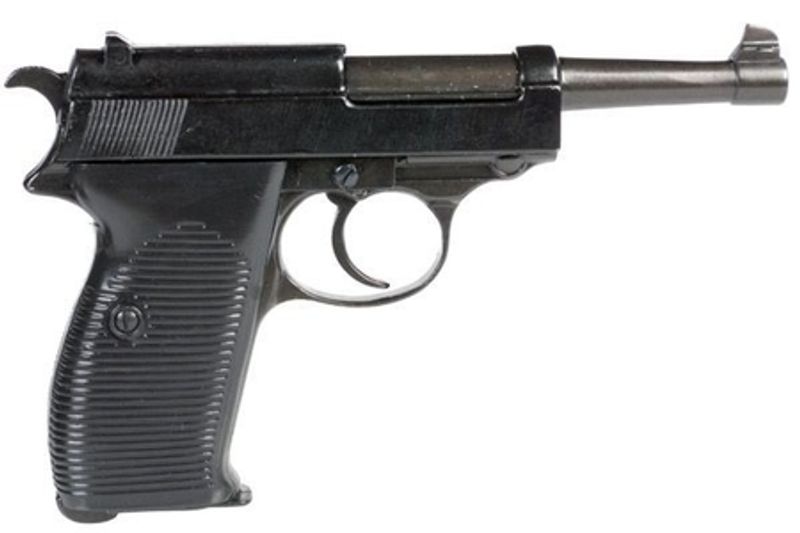 Макет самого массового пистолета Вермахта Walther P38, который знаком каждому любителю оружия. В 1938 году боевой Р38 был принят на вооружение армии Германии чтобы заменить слишком сложный в производстве и прихотливый Люгер Р08, за все время производства было выпущено 1,2 миллиона экземпляров.