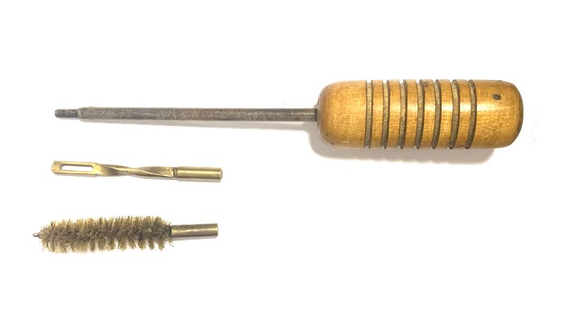 В комплекте шомпол с удобной деревянной ручкой, ерш и протирка на резьбе.