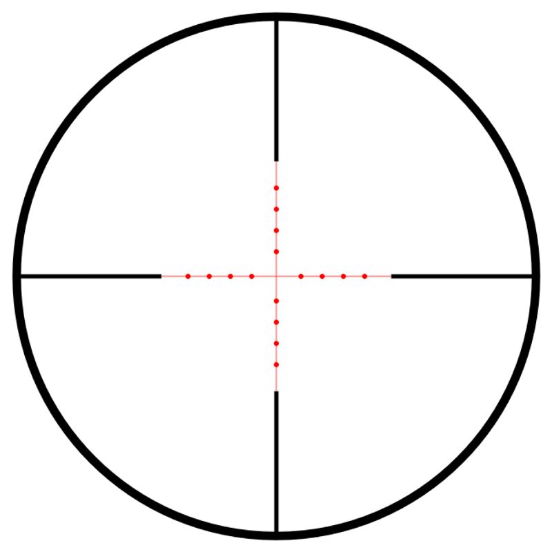 - Сетка Mil-Dot с расположением во ІІ фокальной плоскости (не масштабируемая), принимает истинные угловые значения при 4х