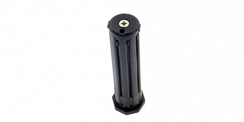 - многозарядный магазин на 120 шариков легко и быстро заряжается, состоит из 8 каналов по 15 шариков в каждом, после отстрела каждого канала стрелок проворачивает пальцами до щелчка нижнюю часть магазина, подводя следующий канал