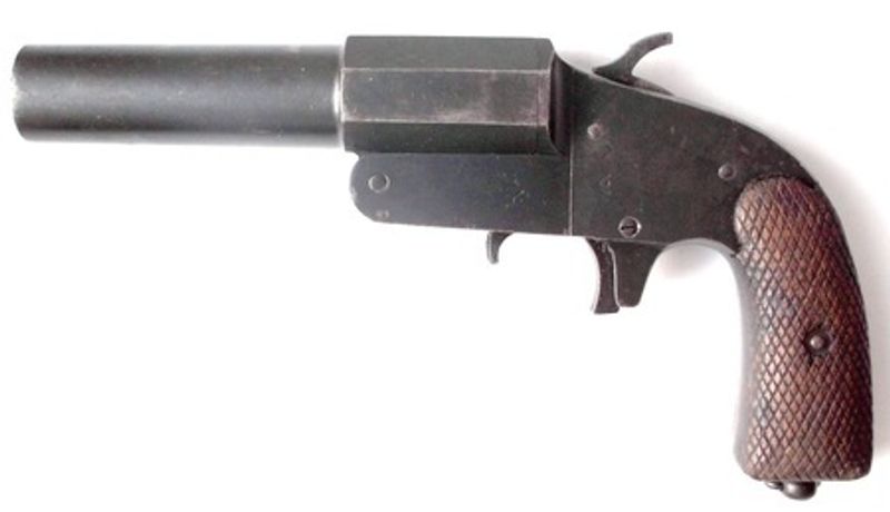 Осветительный и сигнальный пистолет образца 1930 года или ракетница ОСП-30 калибра 26 мм, охолощенная под стрельбу капсюлями Жевело.