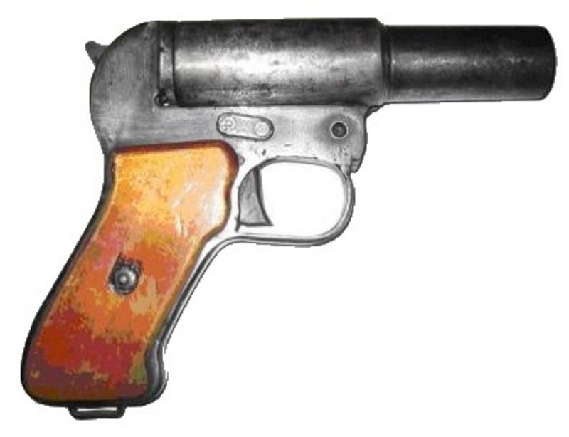 Осветительный пистолет конструкции Шпагина образца 1942 года или ракетница ОСШ-42 калибра 26 мм, охолощенная под стрельбу капсюлями Жевело.