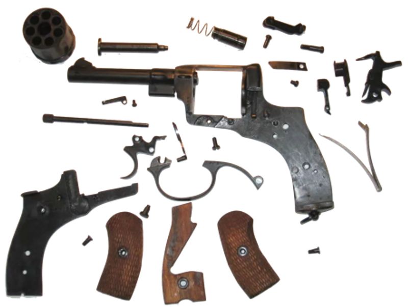 Охолощенный Наган создан на базе боевого револьвера путем изменения конструкции, исключающей стрельбу патронами с пулей.