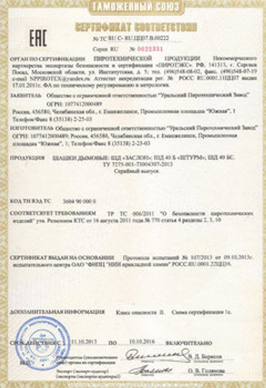 Данная дымовая шашка сертифицирована, разработана при участии специалистов ВПК России